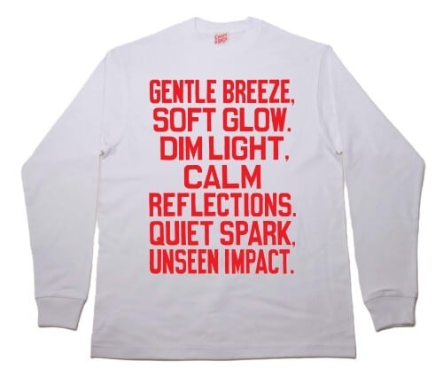 オーセンティックな100%コットン素材を使用、程よい厚みとタフな質感が特徴で使い込むほどに風合いが増していきます。※2026年3月より仕様を一部変更しました。生地の厚み(7.1oz)は同じですが、若干ライトな仕上がりになっています。また以前とサイズ感が異なりますので、リピート購入の方はサイズチャートをご確認ください。(Sサイズはございません)シルクスクリーンを用いて一枚ずつ手刷りでプリントしています。サイズはユニセックスです。"BLACK"『ブラック』と"RED"『レッド』の2色からお選びください。