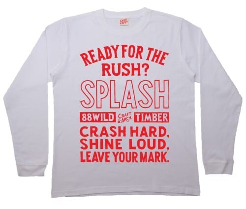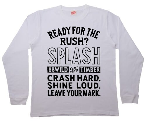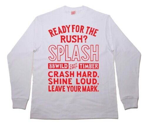 "READY FOR THE RUSH?" 高鳴りの瞬間を問うフレーズ。"SPLASH" 踏み出した一歩が起こす飛沫。"CRASH HARD, SHINE LOUD, LEAVE YOUR MARK." 激しくぶつかり、強く光り、痕跡を残せ。躊躇よりも衝動に賭けろというメッセージ。