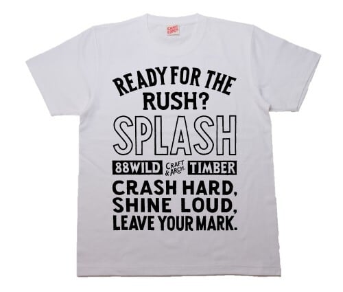 "READY FOR THE RUSH?" 高鳴りの瞬間を問うフレーズ。"SPLASH" 踏み出した一歩が起こす飛沫。"CRASH HARD, SHINE LOUD, LEAVE YOUR MARK." 激しくぶつかり、強く光り、痕跡を残せ。躊躇よりも衝動に賭けろというメッセージ。
