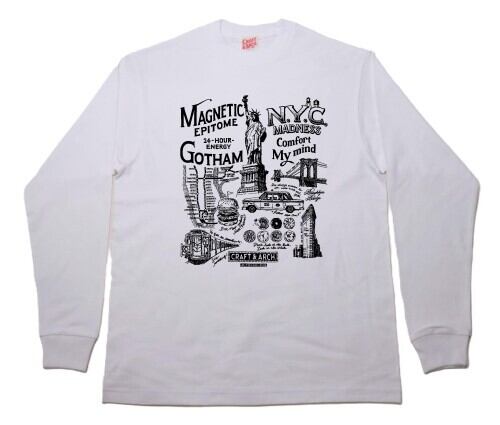オーセンティックな100%コットン素材を使用、程よい厚みとタフな質感が特徴で使い込むほどに風合いが増していきます。※2026年3月より仕様を一部変更しました。生地の厚み(7.1oz)は同じですが、若干ライトな仕上がりになっています。また以前とサイズ感が異なりますので、リピート購入の方はサイズチャートをご確認ください。(Sサイズはございません)シルクスクリーンを用いて一枚ずつ手刷りでプリントしています。サイズはユニセックスです。
